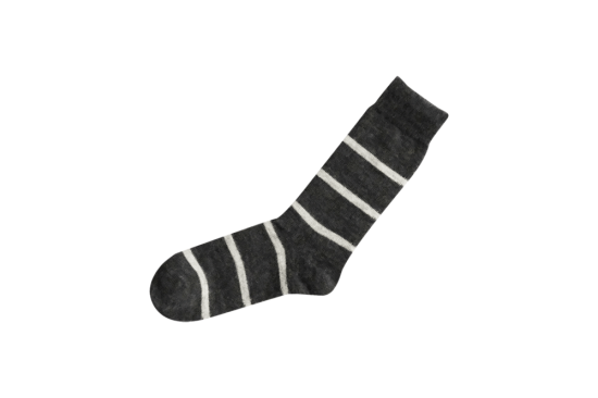 生後1年以内の柔らかなキッドモヘアとウールを混紡した起毛糸を使用しております。モヘヤの特徴は柔らかく保温性が高く、ウールとブレンドすることで薄手でも温かい靴下に仕上がりました。 靴下を編み立てた後も表面も裏面も両方に起毛を更にかけることでより柔らかさな風合いを出しました。