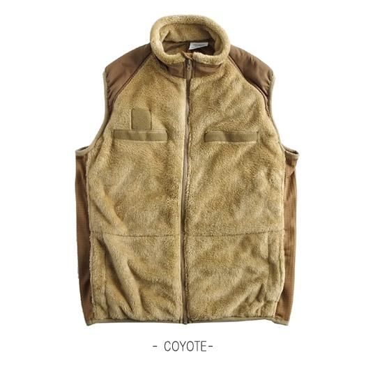 1980年代より導入されたアメリカ軍の寒冷地用被服システムは、2000年代には第3世代となり、LEVEL1からLEVEL7まで7段階(種類)の被服を組合せ、マイナス46度からマイナス1度までの気温に対応できるようになりました。 LEVEL3はフリース素材の防寒着で、LEVEL1,2のアンダーウェアとLEVEL7の防寒コートと組み合わせれば、マイナス18度からマイナス46度の環境に適応できます。 第1世代はパイル地のジャケットで防寒性に優れていましたが、かなり分厚い生地でした、第2世代はフリース素材に変更されました。 第3世代の物は第2世代に比べ、さらに軽量の素材に変更され、厚みを抑えて、活動時の動きやすさを重視した仕様になっています。 当社の製品は主に陸軍の迷彩パターンに対応したフォレッジグリーン、コヨーテ、ブラックのカラーバリエーションがあり、素材を保湿性に優れたポリエステルに変更し、アウターでも十分対応できる仕様に変更しています。