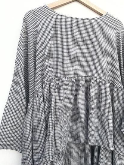 ふんわりと風に揺れるギャザーが特徴のブラウスです。夏場一枚でさらりと着られるブラウスです。