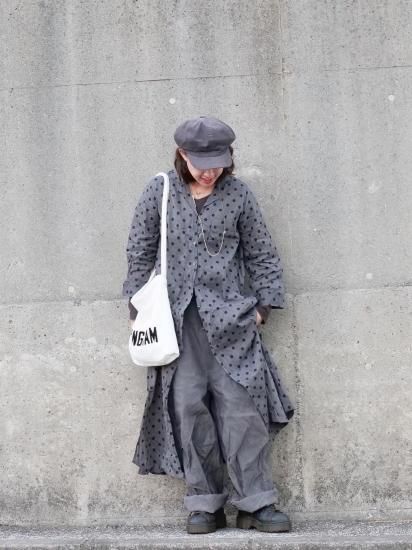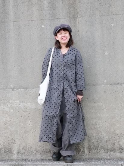 コットン100%の60Sの糸を使用したツヤのある素材で、ドットのワンピースを作りました。