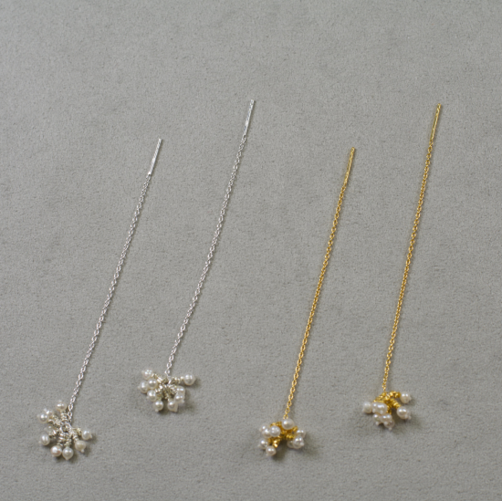 極小パールを粒々の花のようにデザインしたピアス。